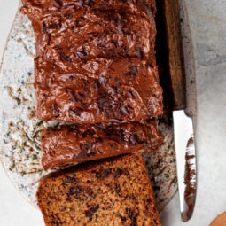 Bananen-Zucchini-Kuchen mit Schokolade – Saftiger Kastenkuchen mit geriebenem Gemüse, Zimt und cremigem Schoko-Frosting