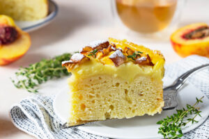 Nektarinenkuchen mit hausgemachtem Vanillepudding und Frucht-Topping